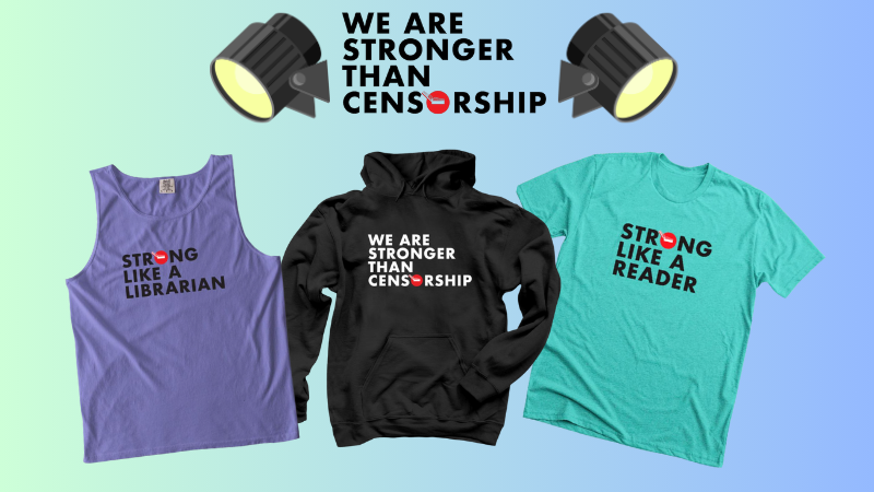 Not sure what you might wear to that event? Consider a WE ARE STRONGER THAN CENSORSHIP T-shirt or sweatshirt. Every purchase includes a $16 donation to buy and donate two books to offset one book challenge. We’ve sold over 140 shirts so far, raising more than $2,500 (meaning those sales raised enough to buy and donate 300 books to offset 150 book challenges!) Check out the collection today.