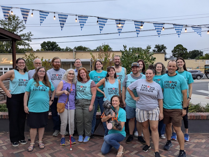 3) Cheers again to the team at Technica Editorial, who took this photo at a team event this month in Durham, North Carolina. Note how everyone in the photo is wearing a “Strong Like An Editor” shirt from We Are Stronger Than Censorship. Those 17 shirts represent a combined donation of $272 to the program, allowing us to buy and donate 34 books to offset 17 book challenges!